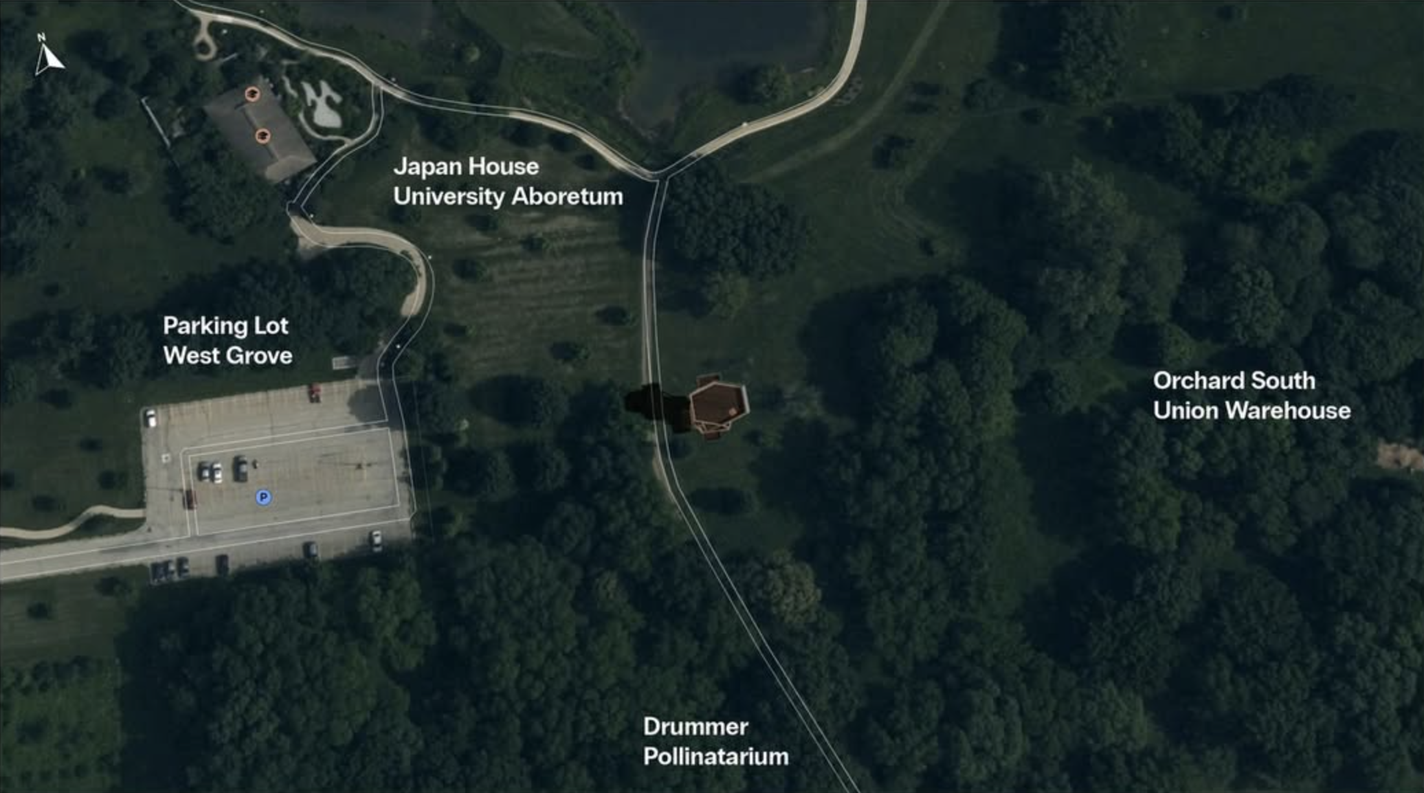 Let me briefly walk you through my process for this miniature project. We were asked to design an observation tower for one of three sites in the University Arboretum near the Japan House—a peaceful and picturesque area. I chose Site C, located south of the Japan House, with lush greenery and an open corner where I placed my tower. I used to live near the arboretum and visited it often, so I felt a personal connection to the site.